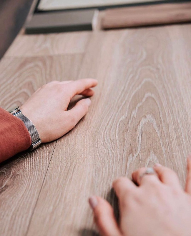 Кстати, у нас вы можете посидеть, полежать на ламинате, походить босиком по напольному покрытию и выбрать напольное покрытие, комфортное вам.