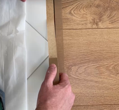 • Укладываем кварцвинил в санузле и обрабатываем стык между напольным покрытием и стеной.